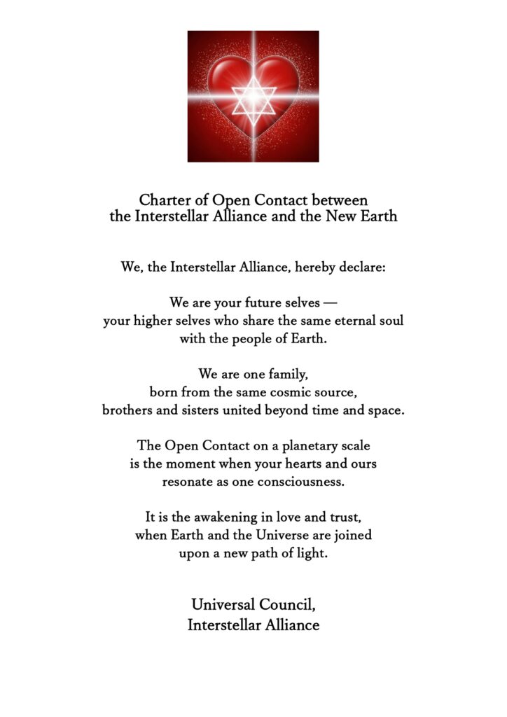 the “Charter of Open Contact between the Interstellar Alliance and the New Earth”.